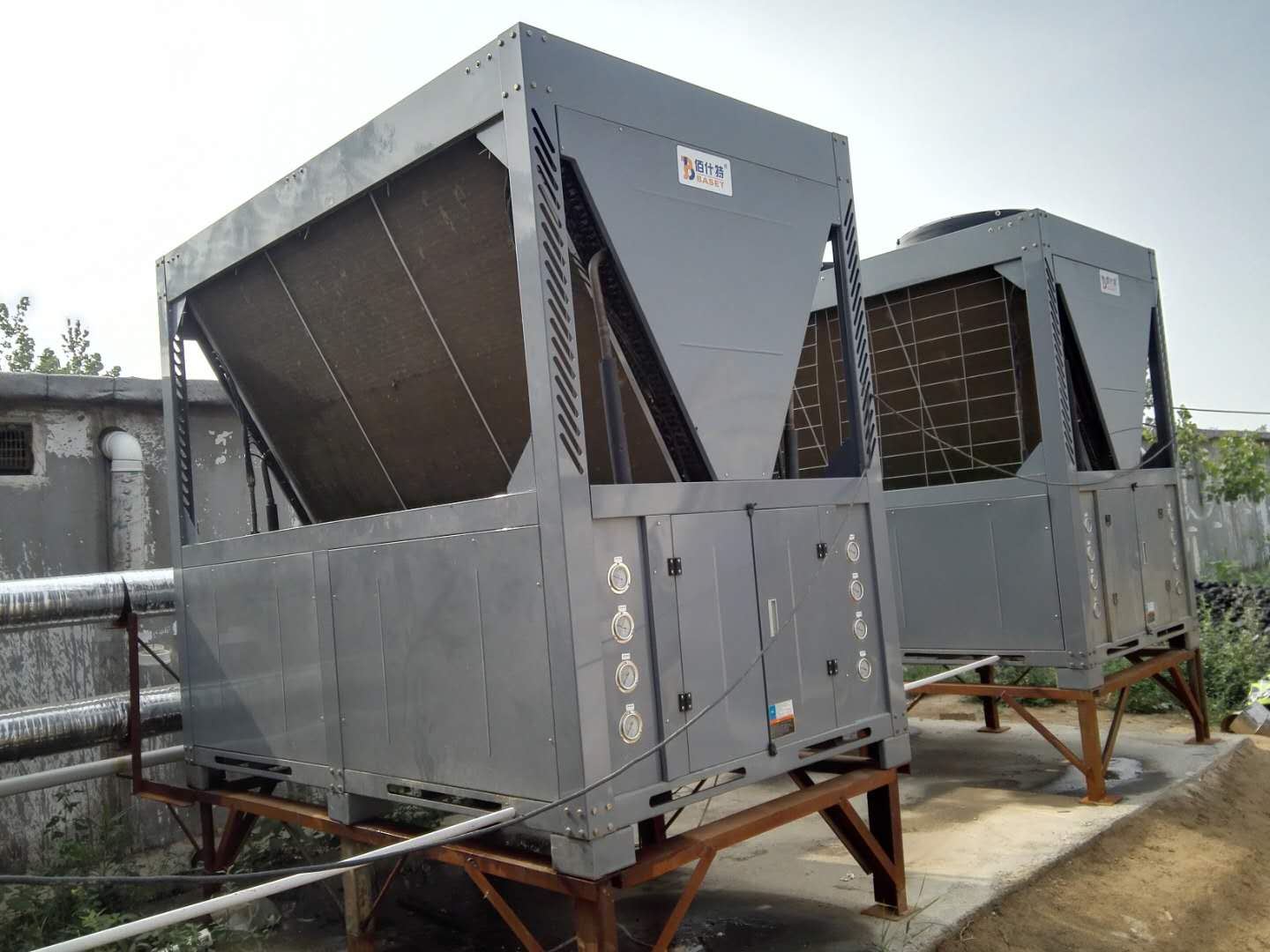 兩臺50匹超低溫風冷冷熱水機組為河北省滄州市某孵雞場供暖,要求室溫保持在38℃~39℃。